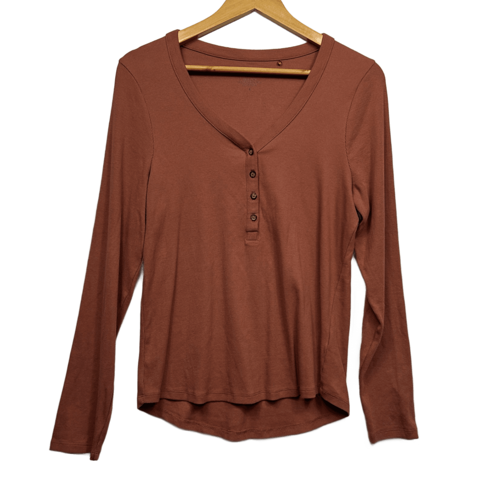 Target Rust Cotton Blend Long Sleeve V-Neck Casual Top 14