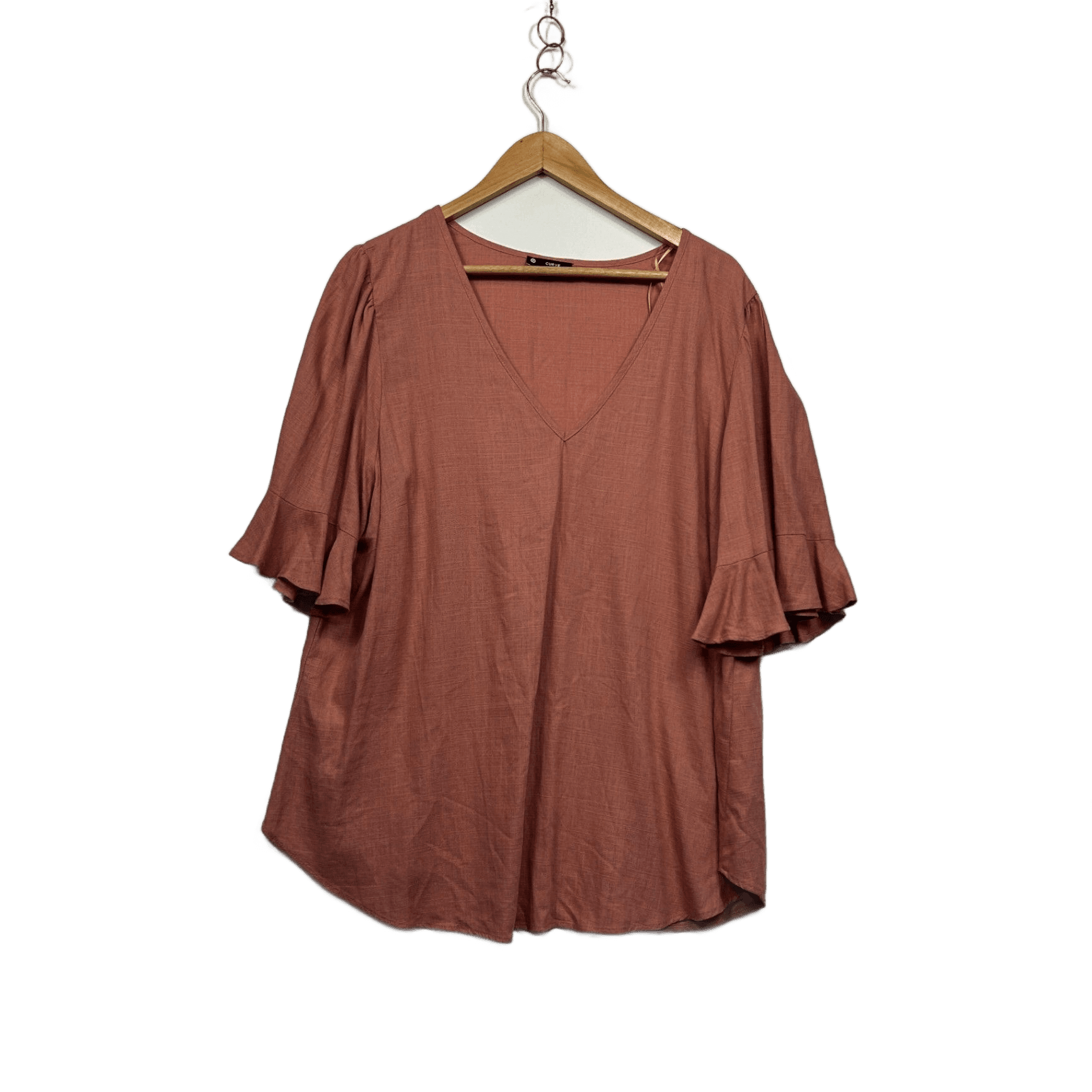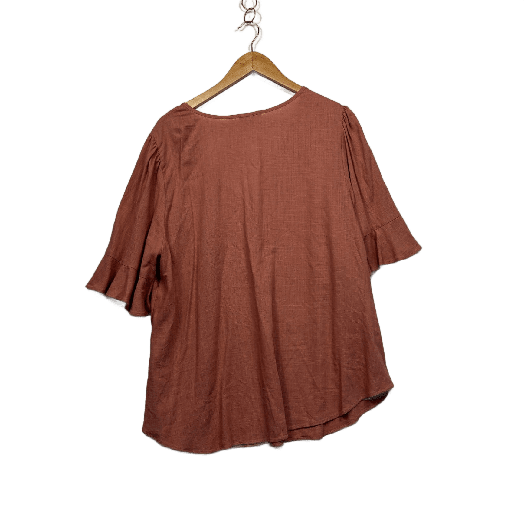 Target Viscose Linen Blend Short Sleeve Ruffle Blouse Top Size 18