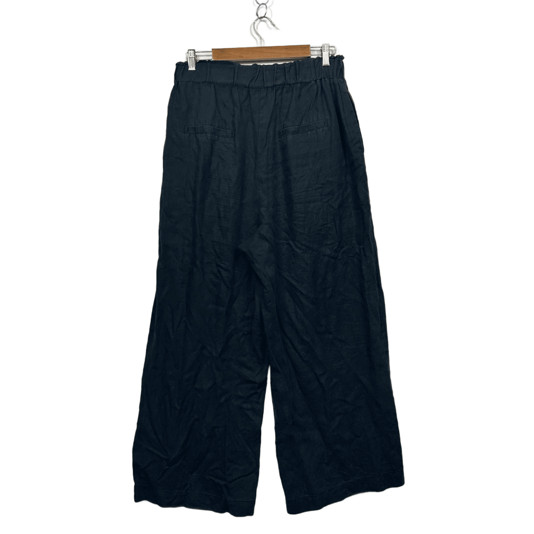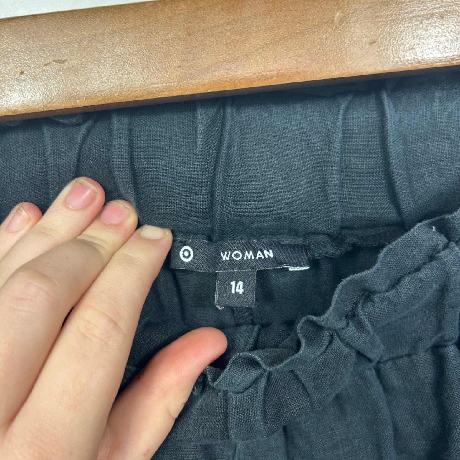 Target Woman Black Wide Leg Linen Blend Pockets Pants Trousers Size 14