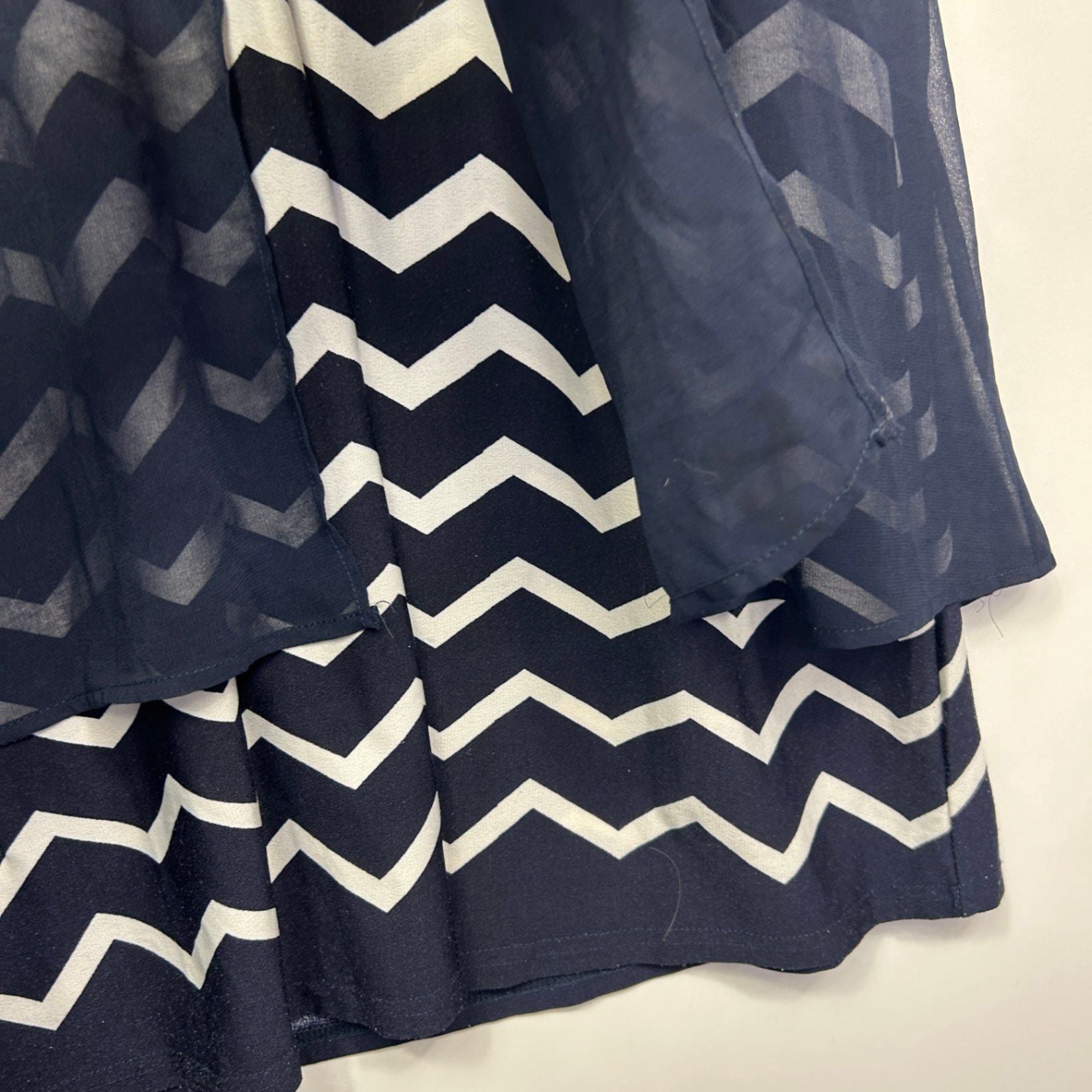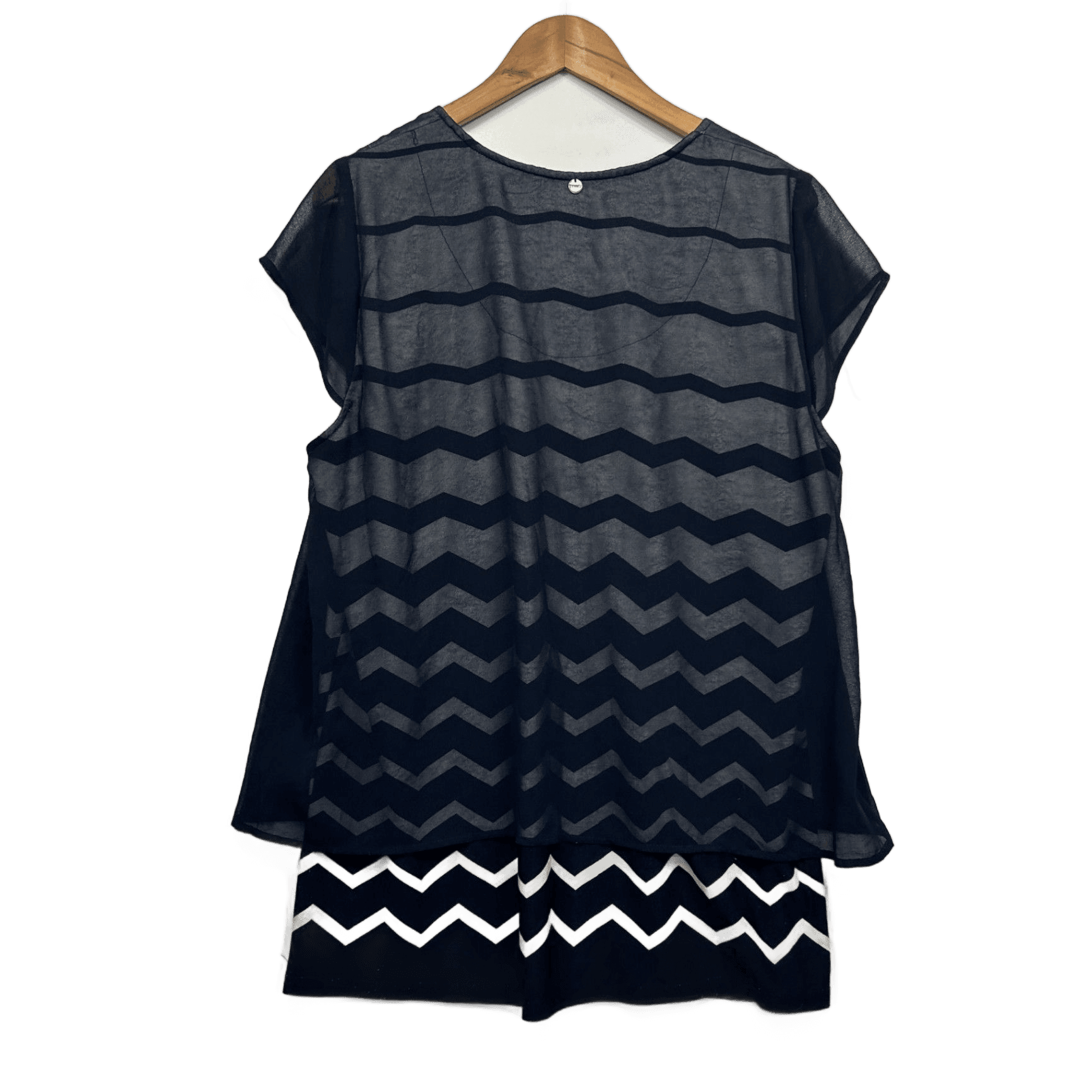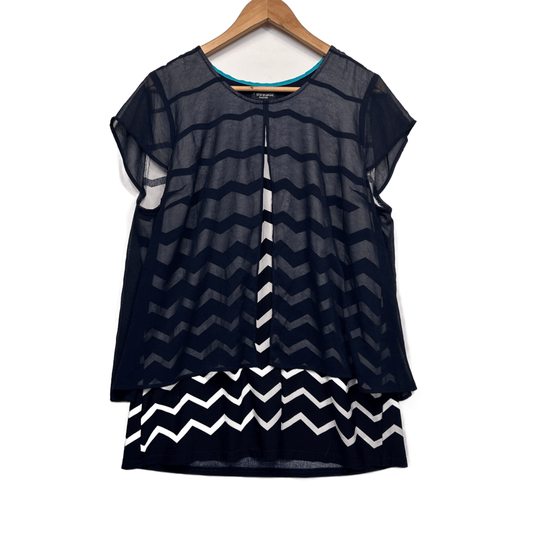Threadz Navy White Sheer Overlay Short Sleeve Top Striped Size XL