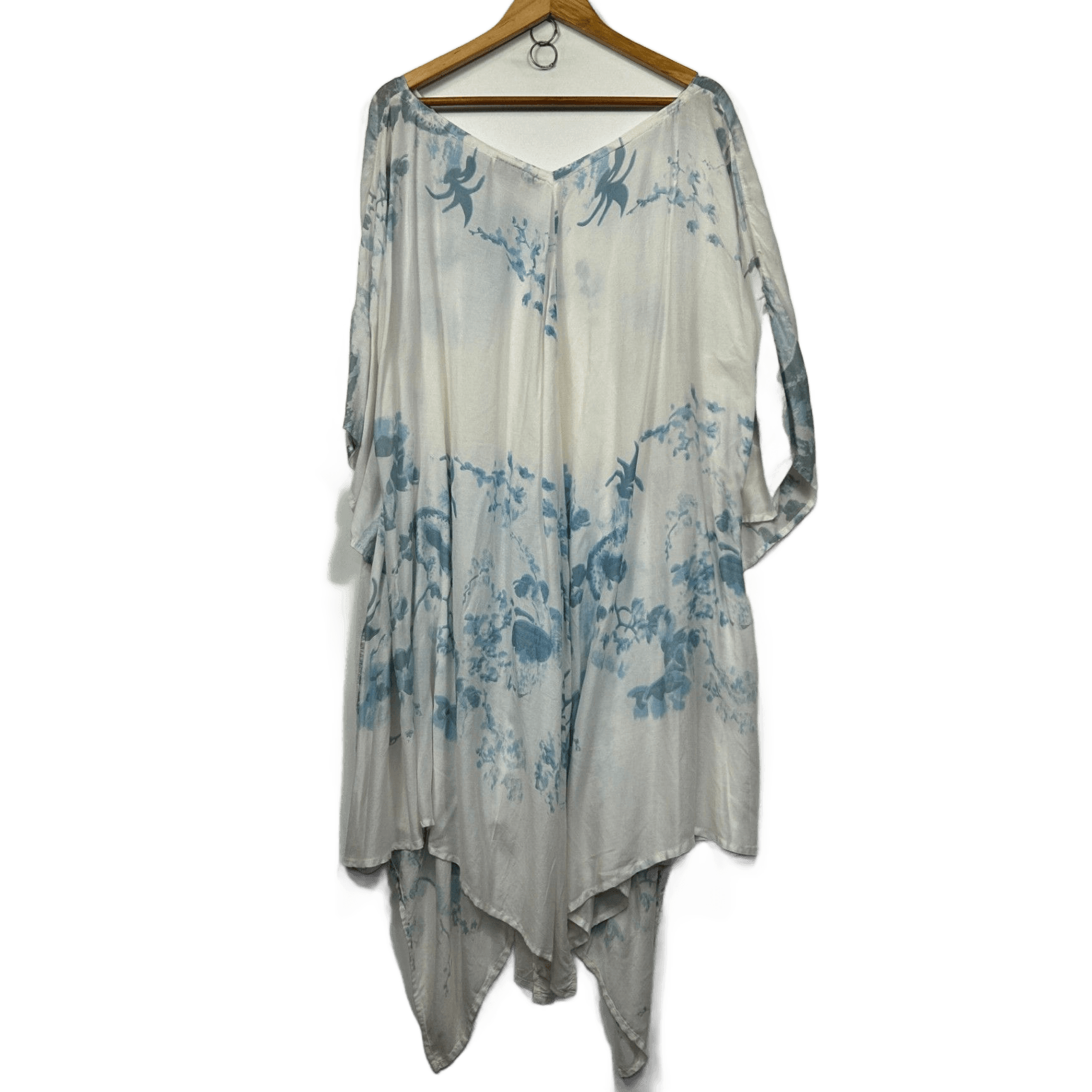 Tree Of Life Womens White Blue Tie-Dyek Kaftan Dress - One Size (faults)