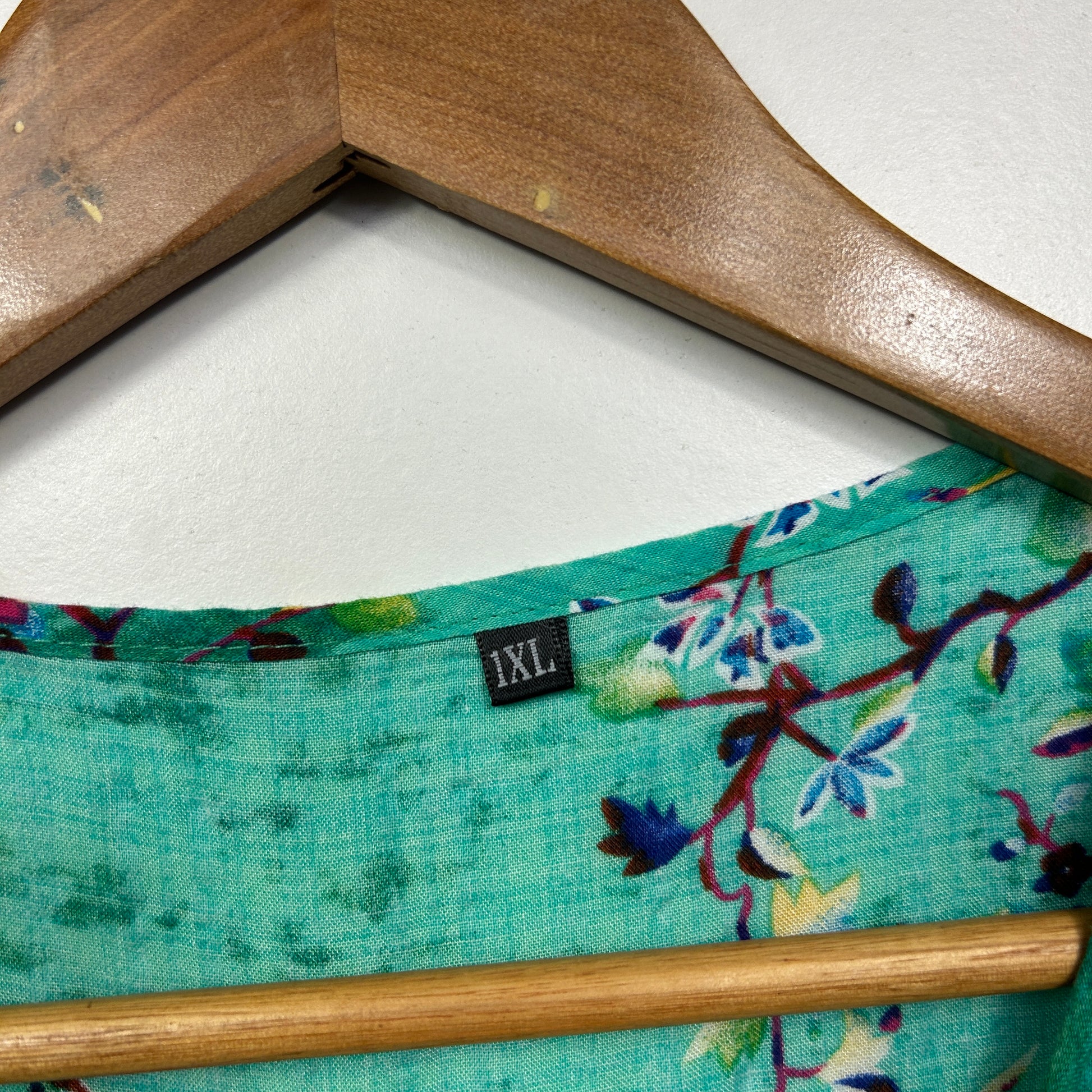 Turquoise Floral Botanical Print Tiered Dress - Size XL