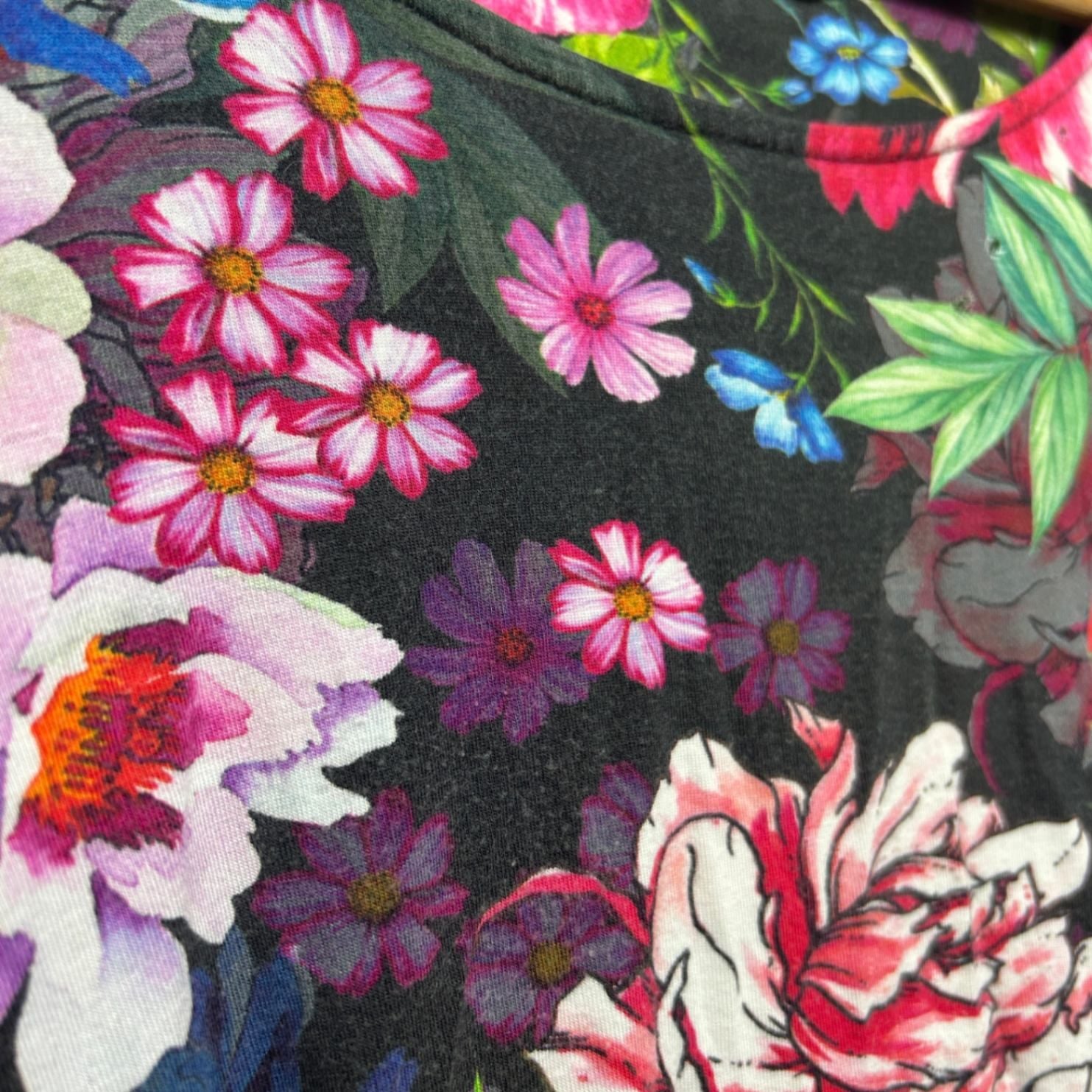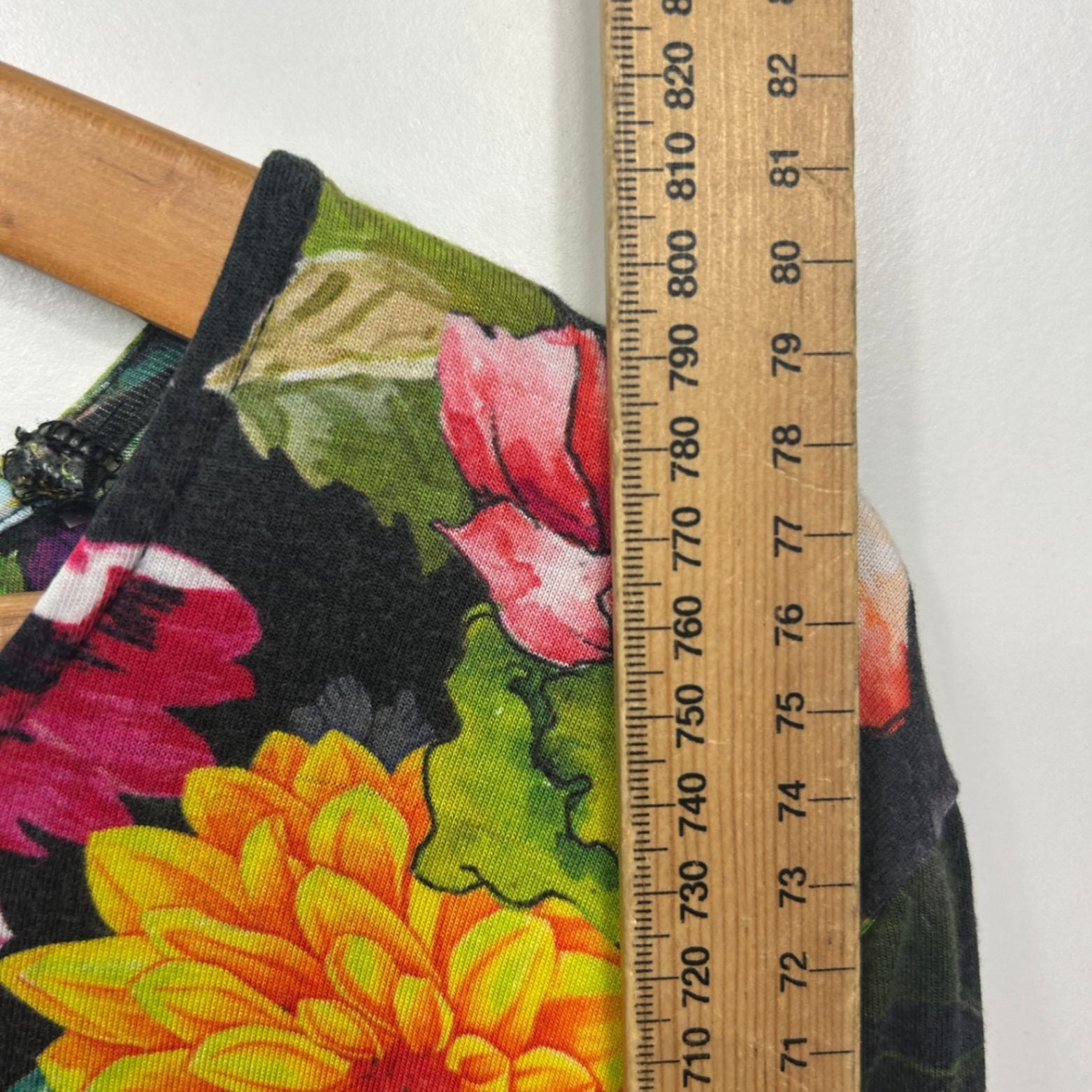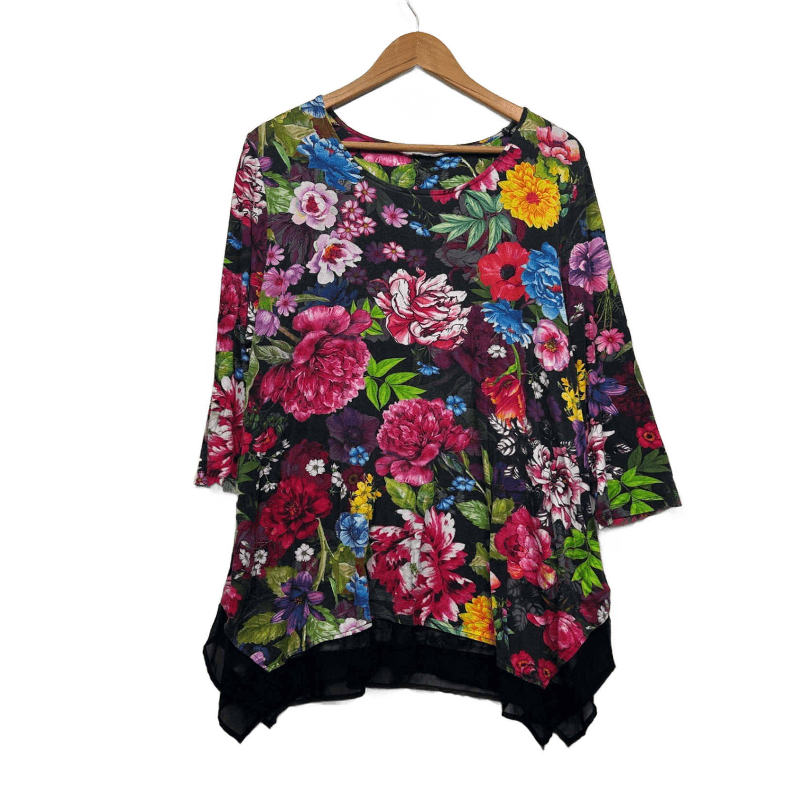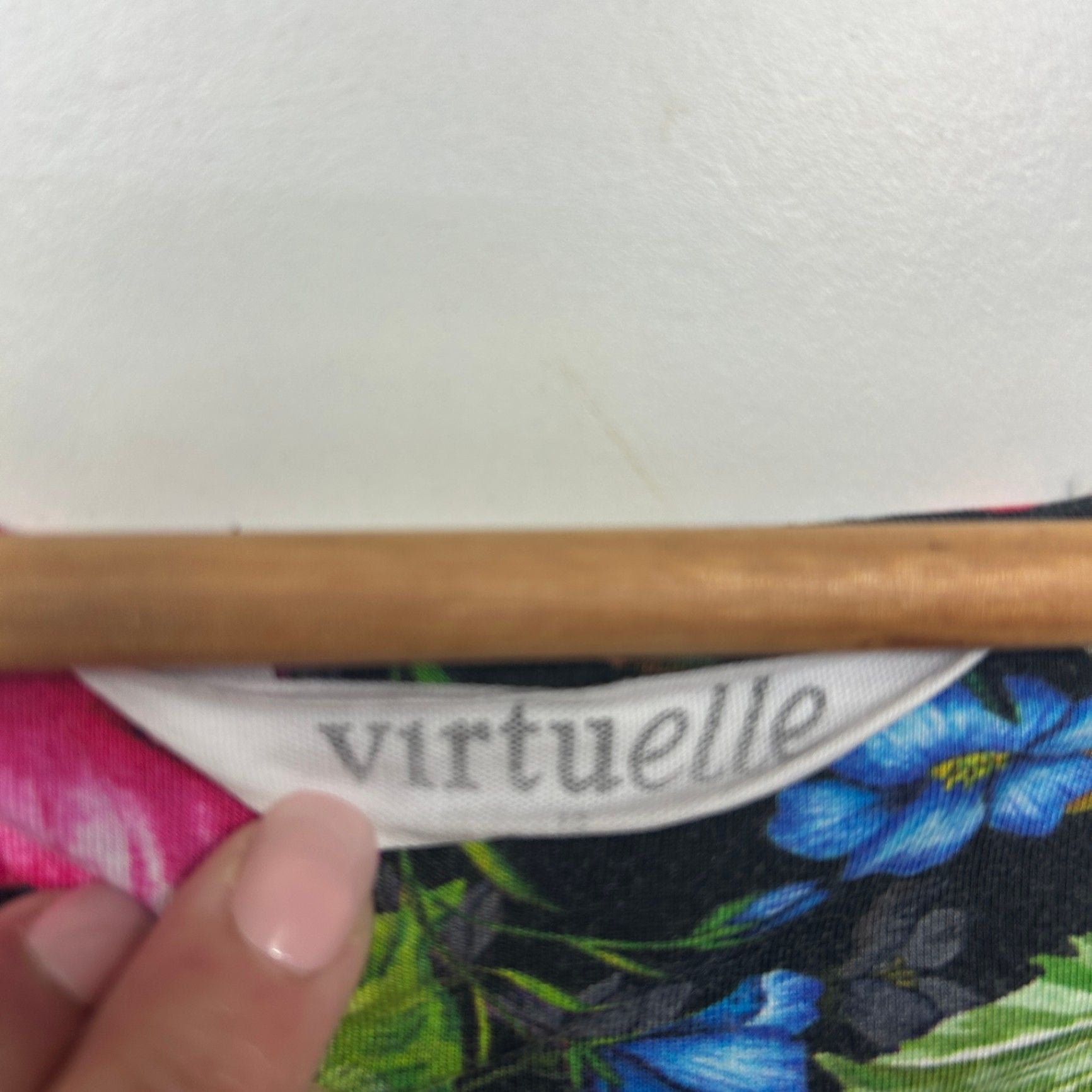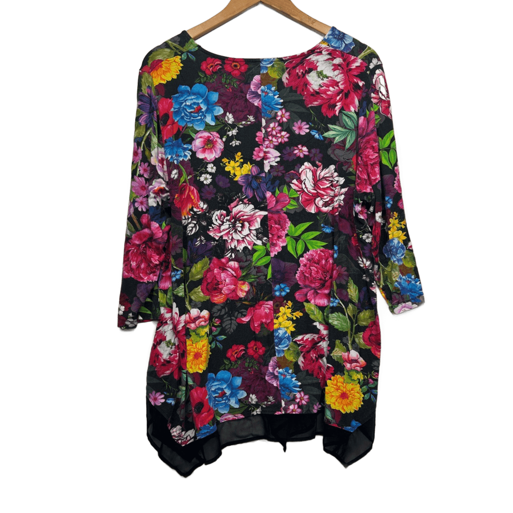 Virtuelle Black Floral Tunic Top Size 16 Plus Asymmetric Hem