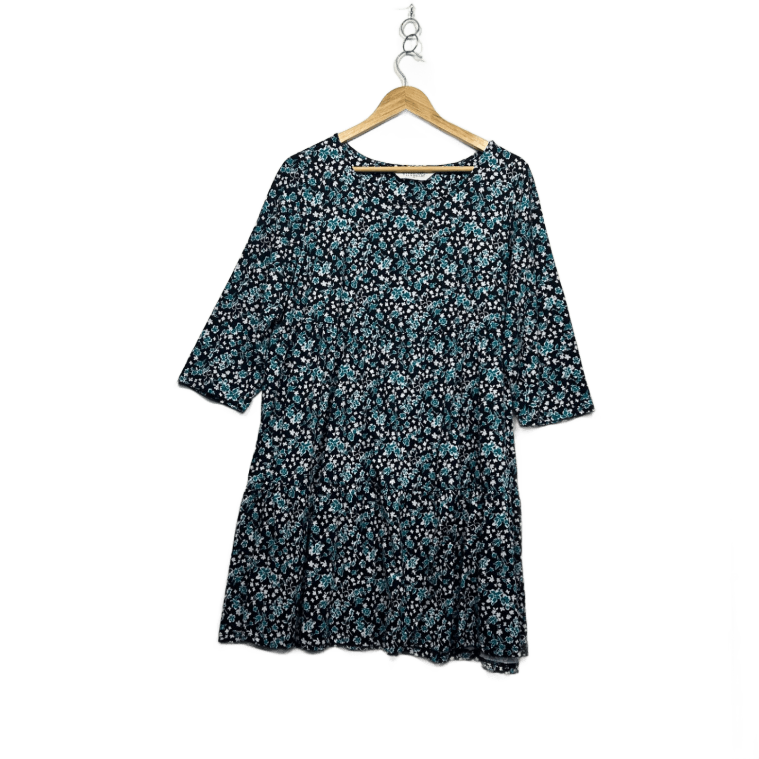 Virtuelle Dress Size 12 XXS Black Floral 3/4 Sleeve Organic Cotton