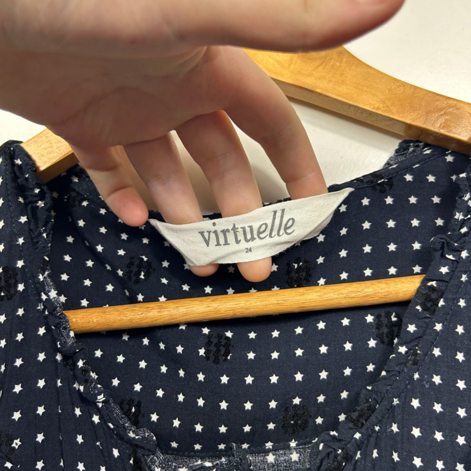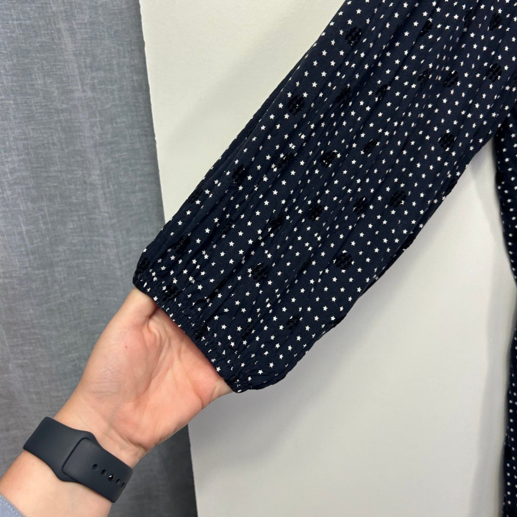 Virtuelle Navy Stars Long Sleeve Ruffle Collar Blouse Top Size 24