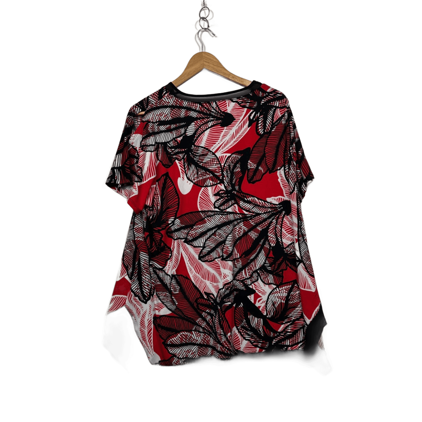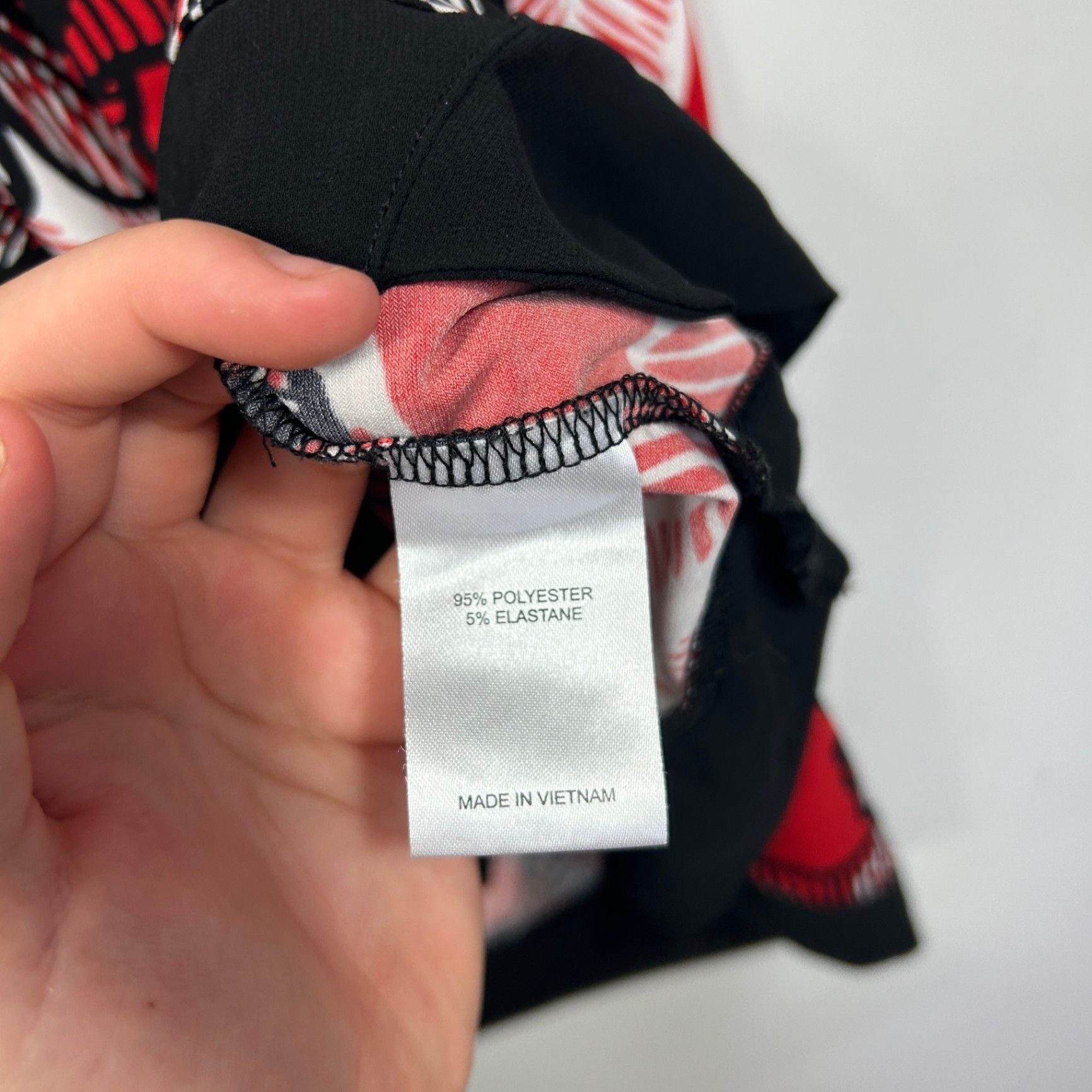 Virtuelle Red Black White Short Sleeve Floral Tunic Top Size 16 Plus Small