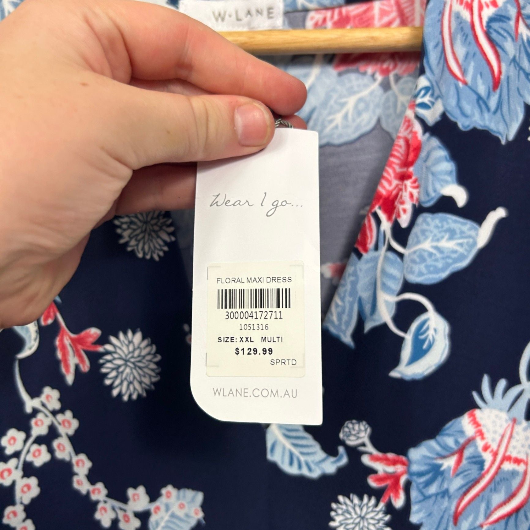 W Lane Blue Floral Sleeveless Midi Length Dress Size 2XL