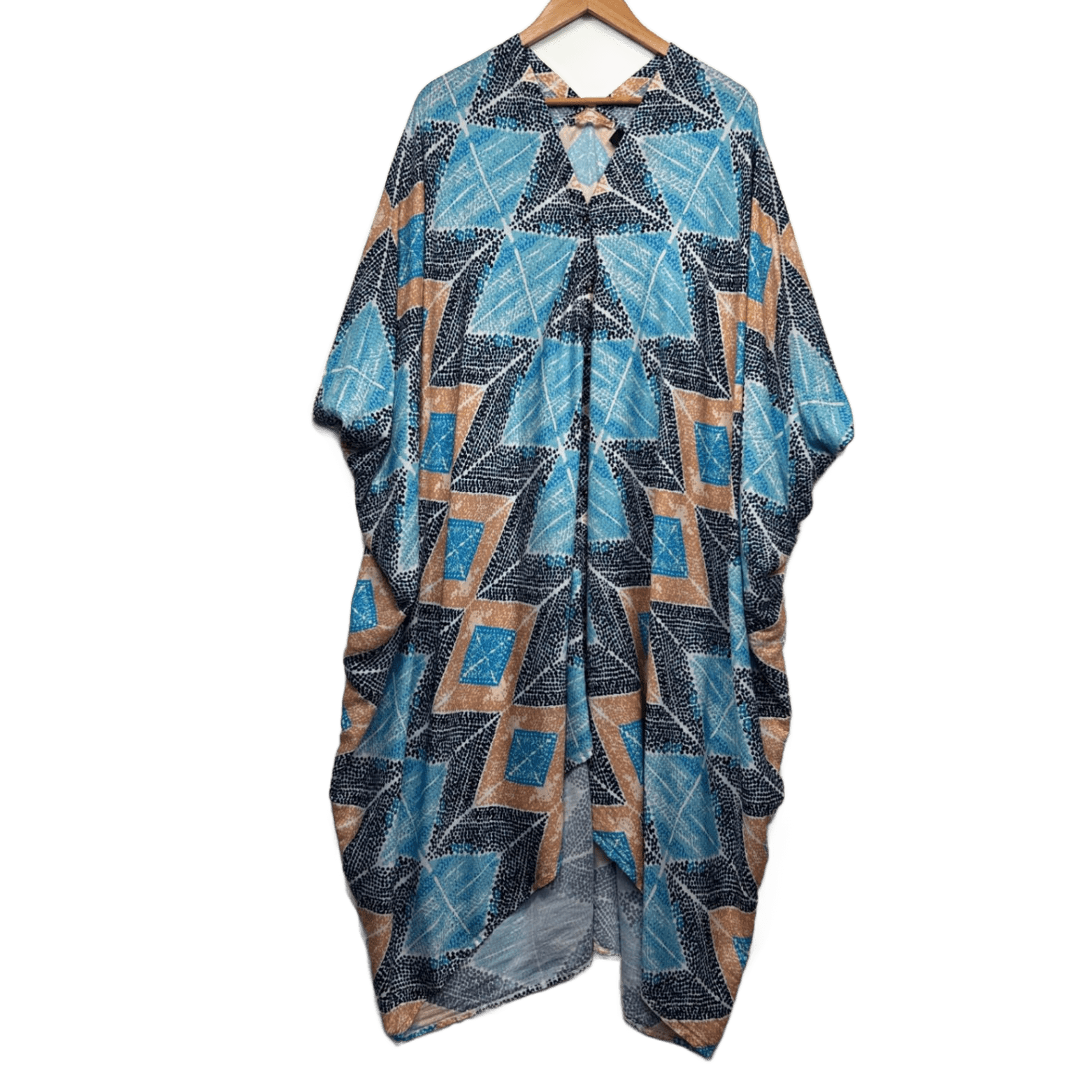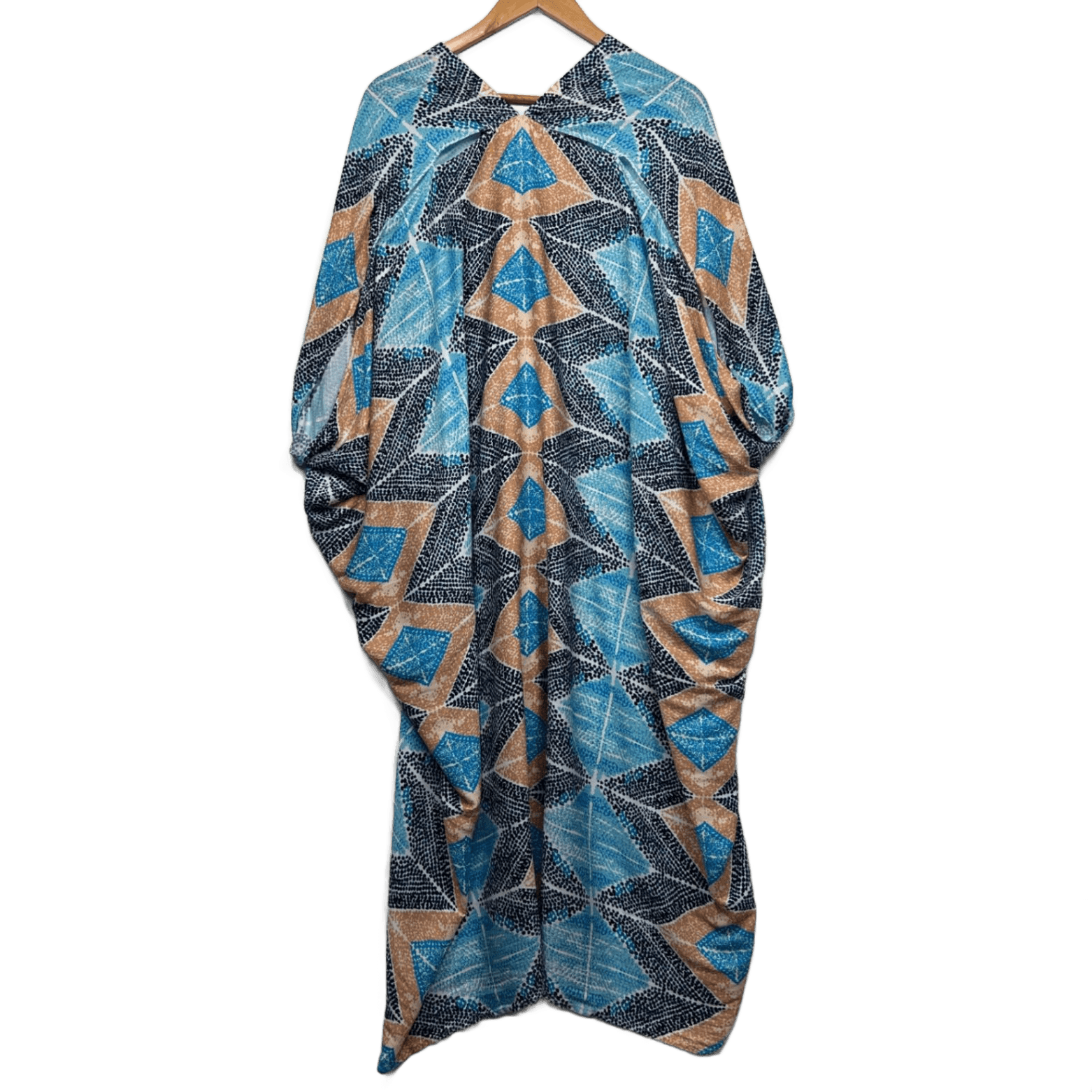 Wayne Cooper Blue Short Sleeve Long Kaftan Dress One Size
