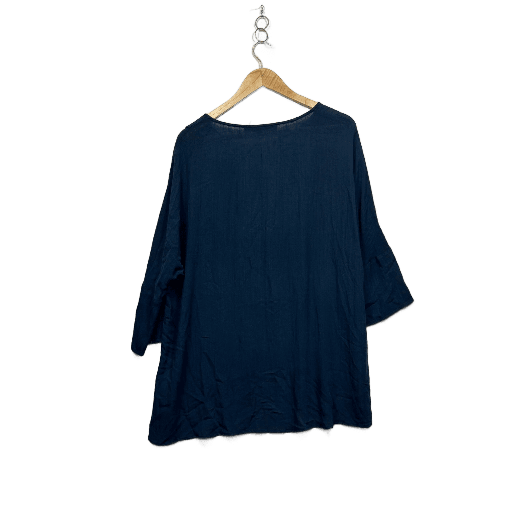 Willow & Tree Layered Navy Long Sleeve Top Size 16 Linen Blend
