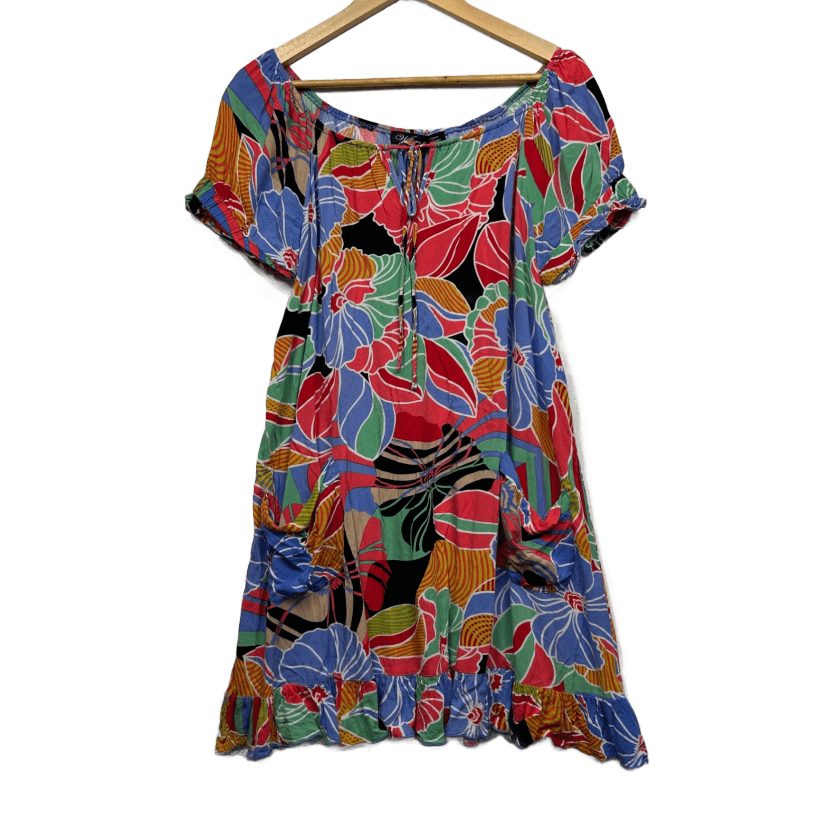 Willow Tree Short Sleeve Dress Size 14 Multicoloured Floral Pockets