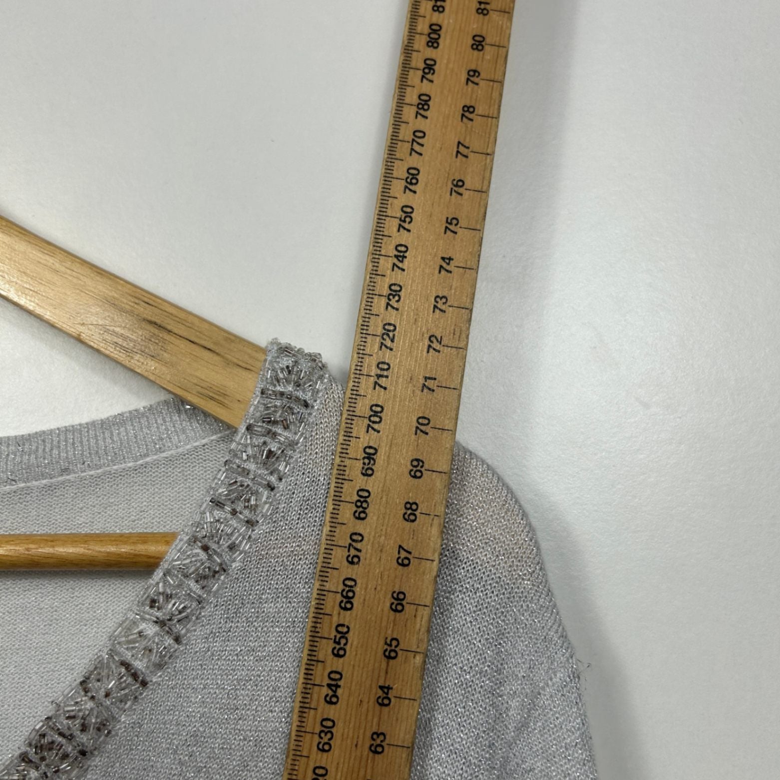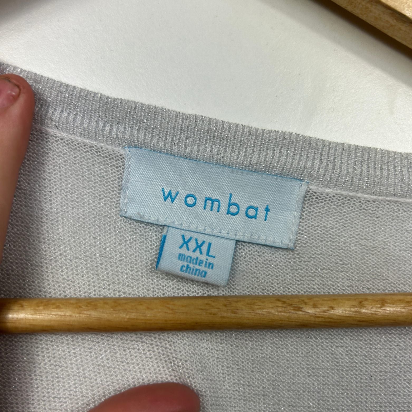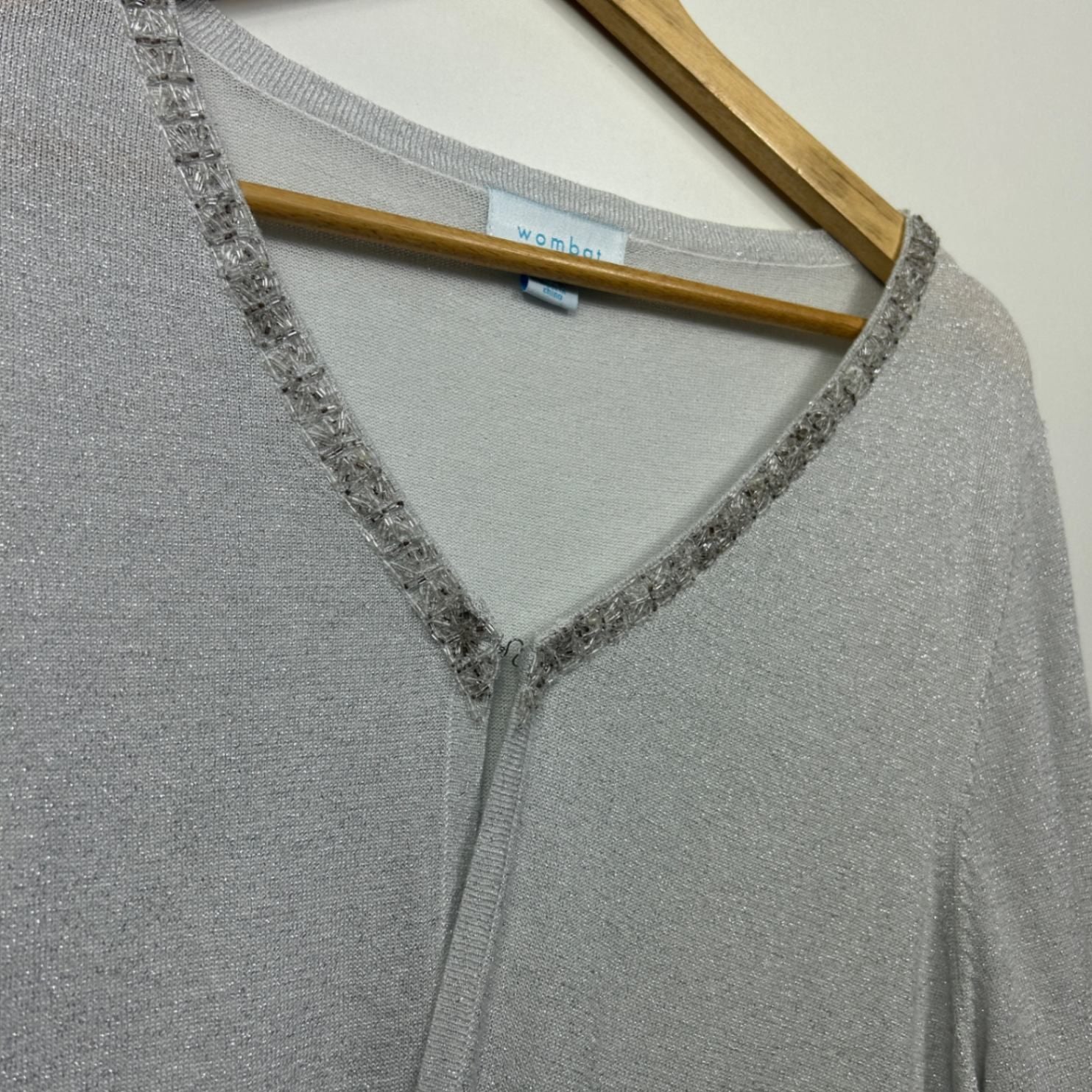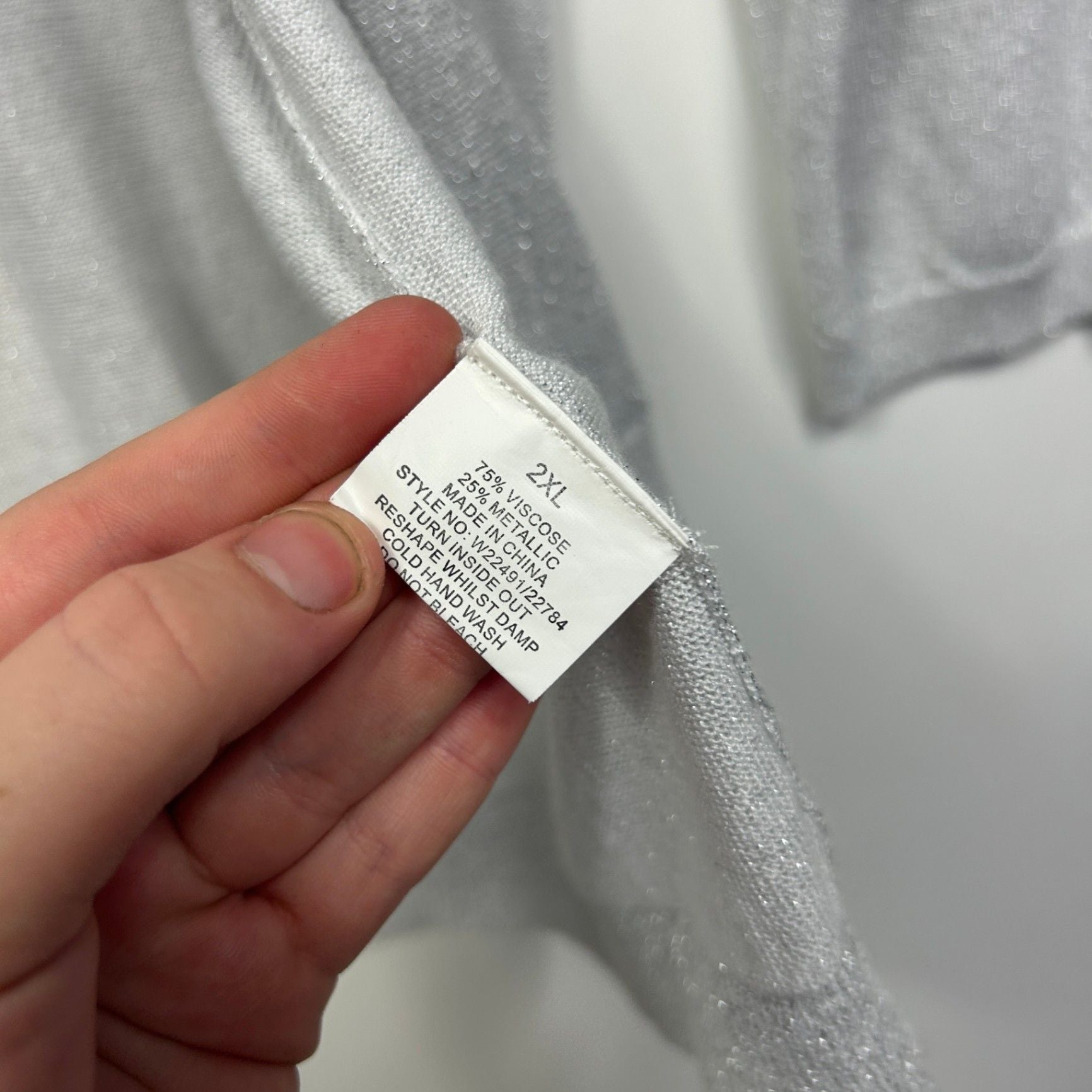 Wombat Silver Metallic Beaded Long Sleeve V-Neck Open Front Top Size 2XL 16 18