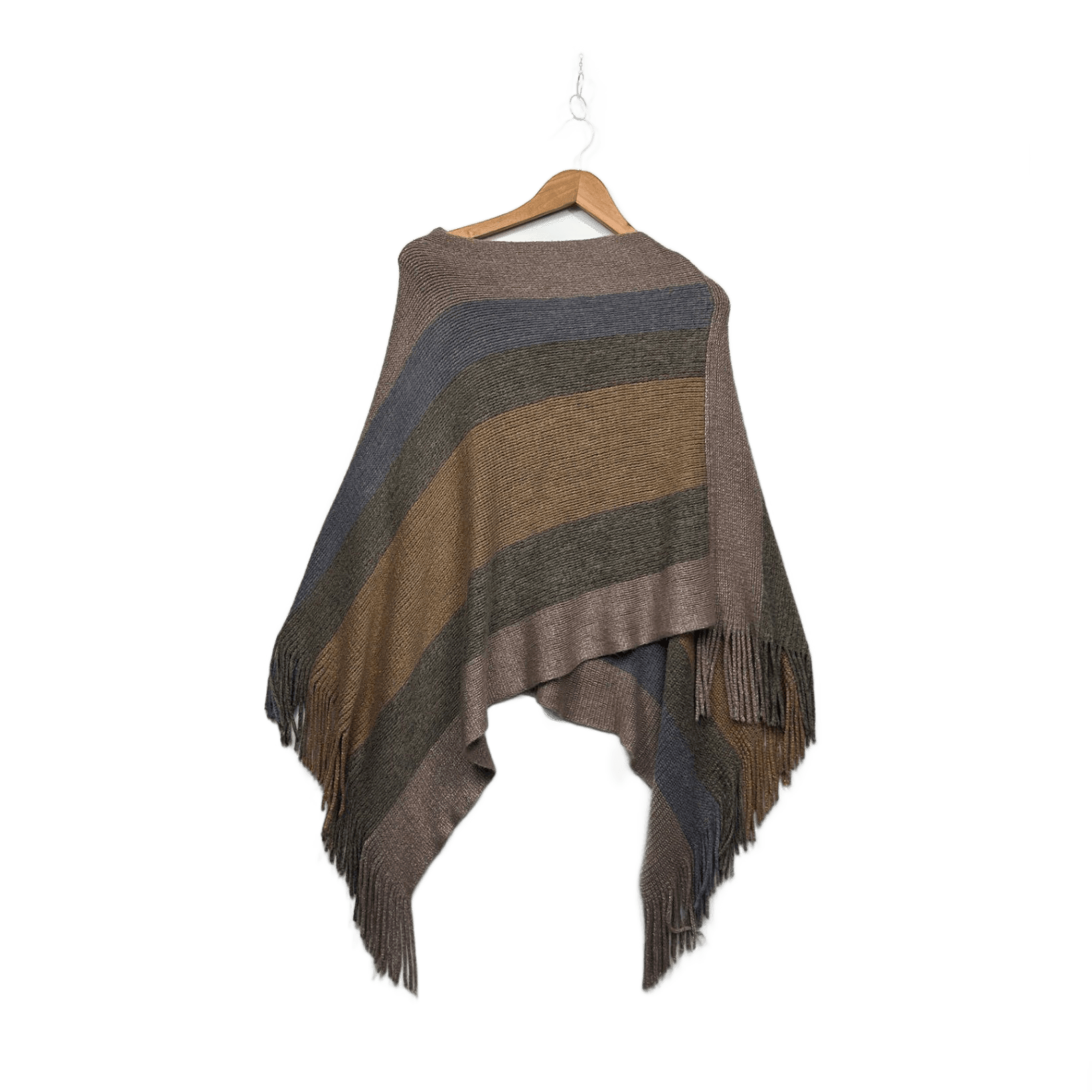 Womens Brown Striped Boat Neck Knit Poncho Jumper One Size