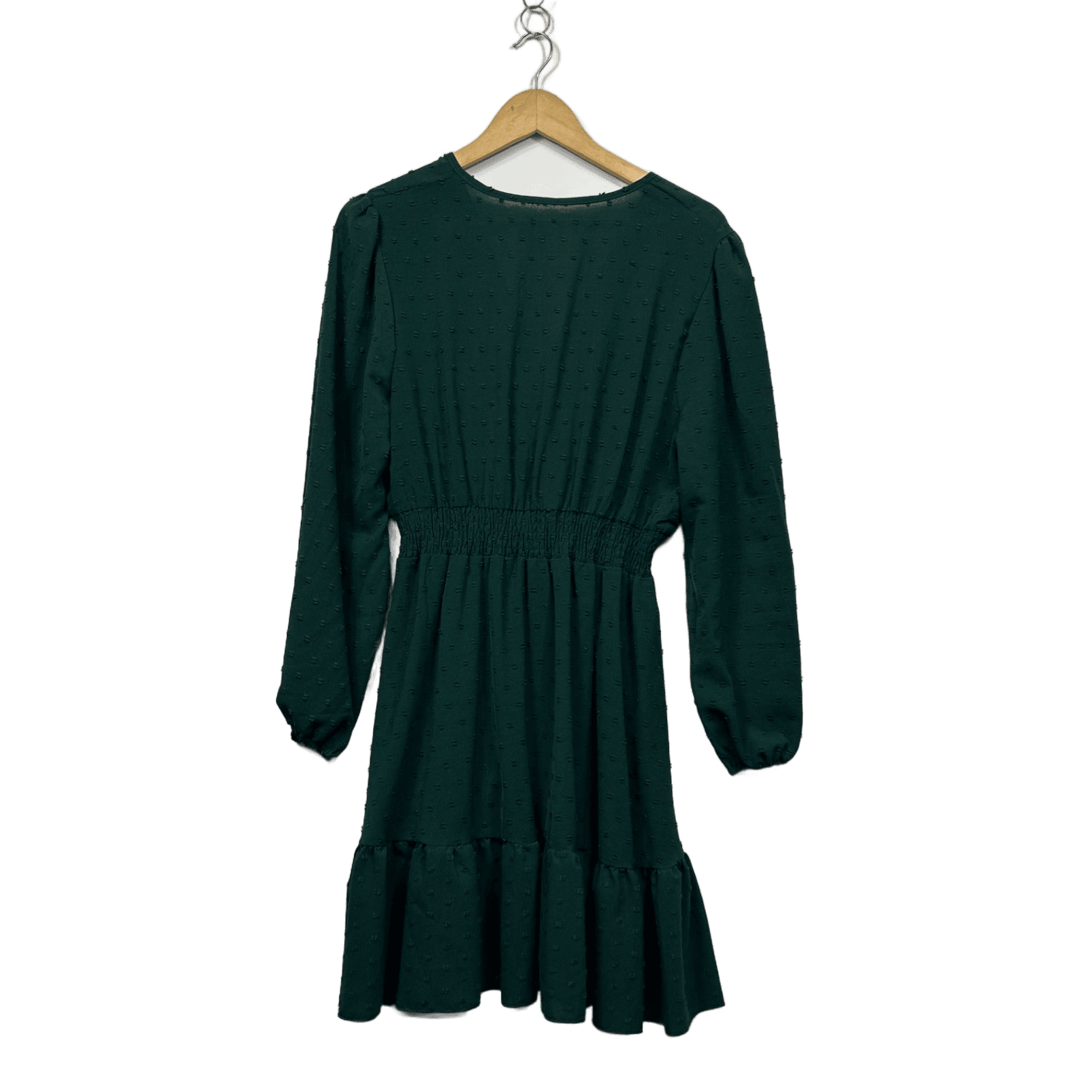 Womens Green Long Sleeve Mini V-Neck Fit & Flare Dress Size 12-14?