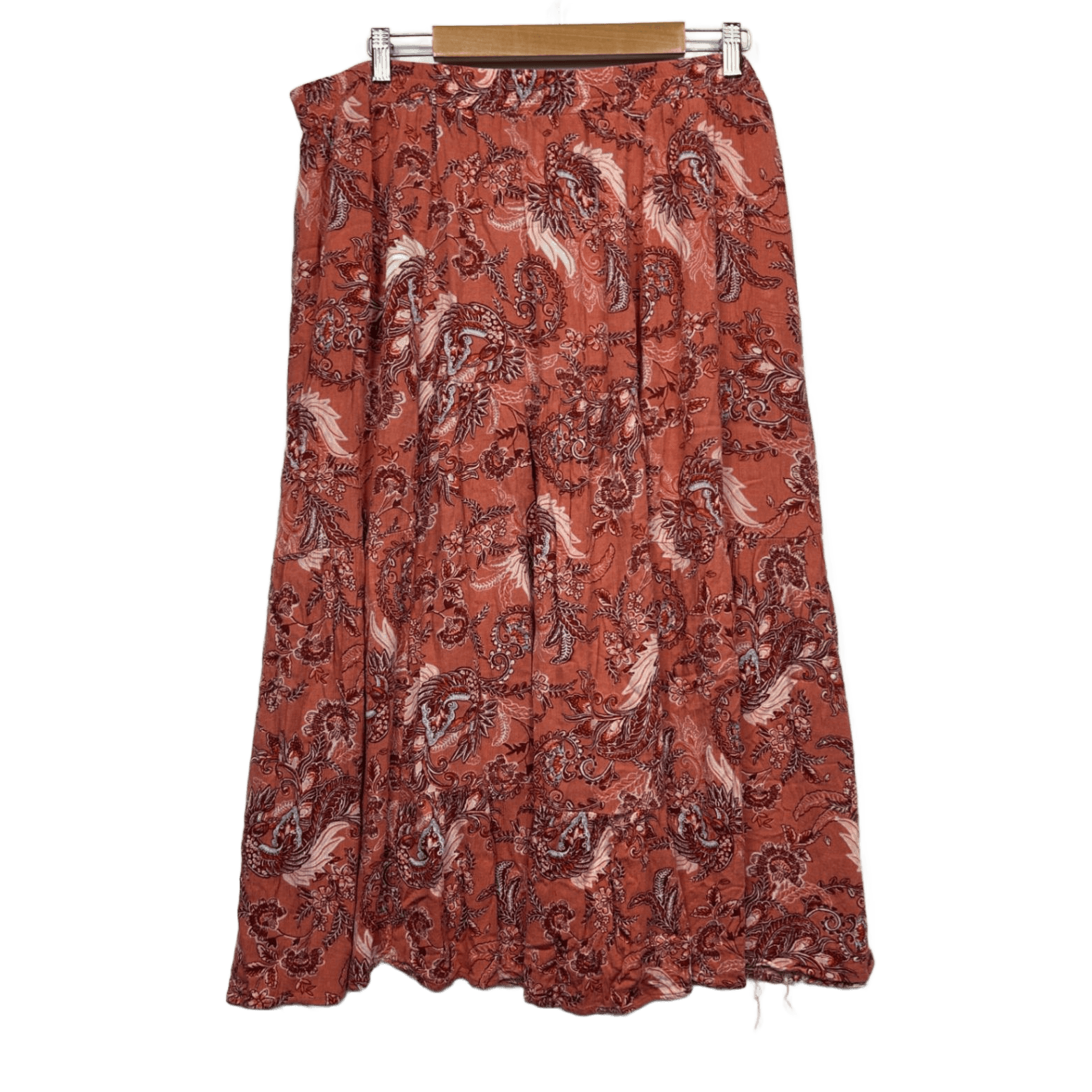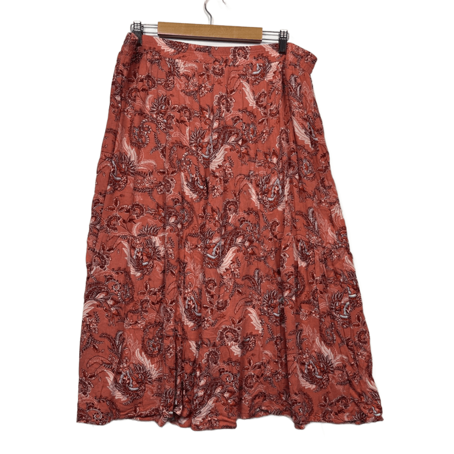 Paisley Print Midi Length Rust Viscose Maxi Skirt Size 20 - 22