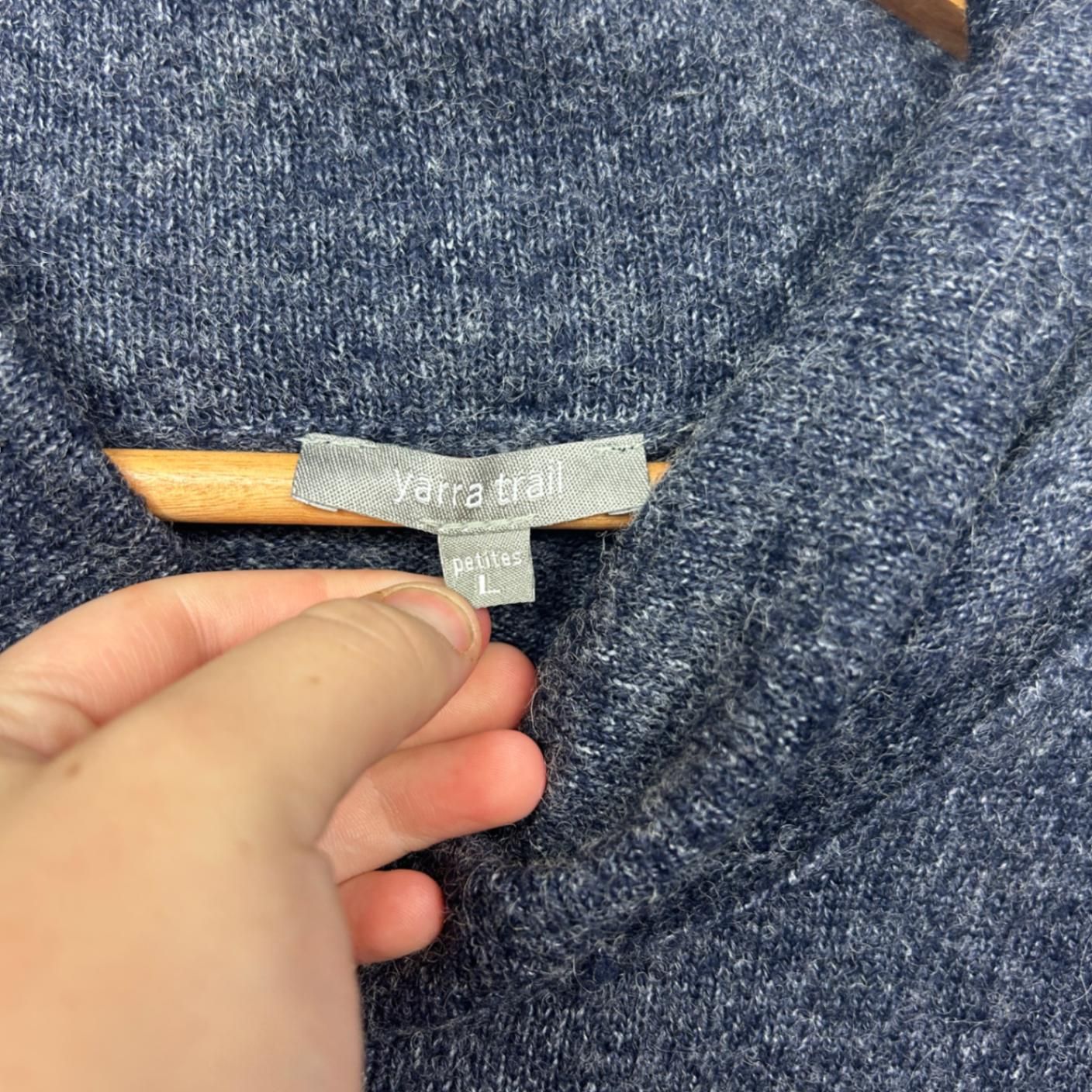 Yarra Trail Blue Wool Blend Cowl Neck Pullover Jumper Size Large Petites