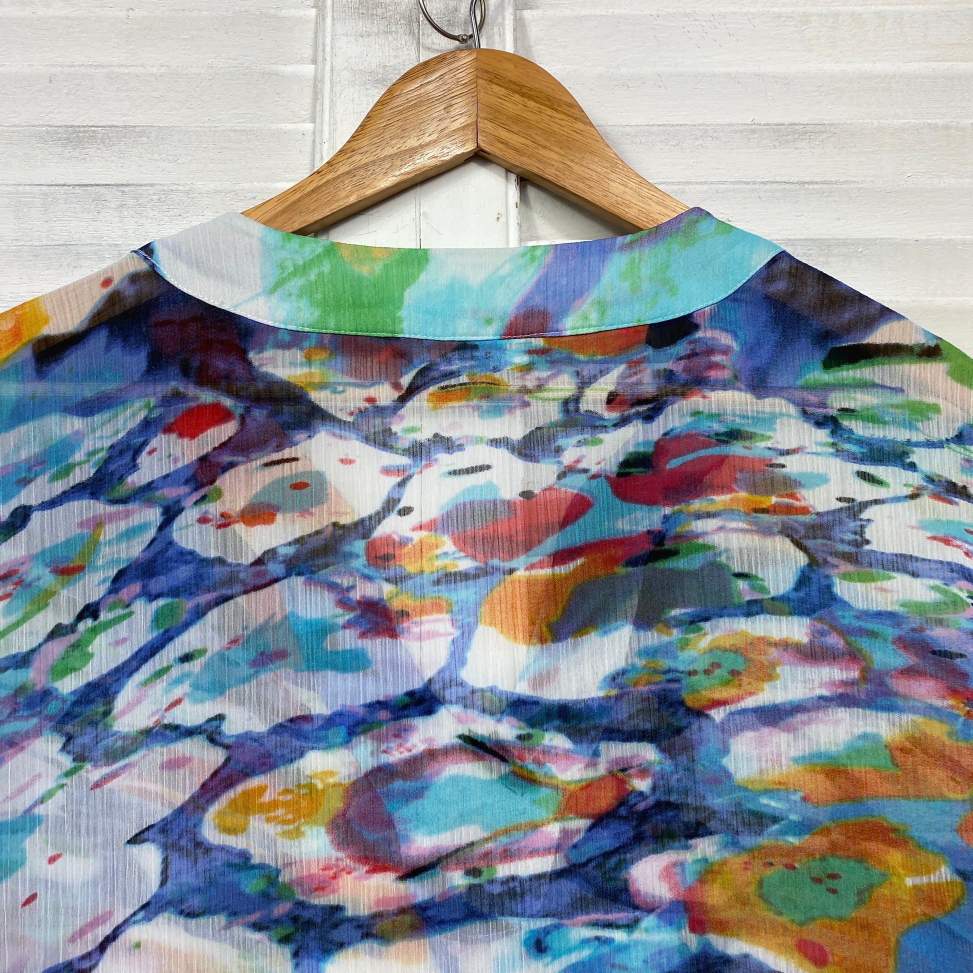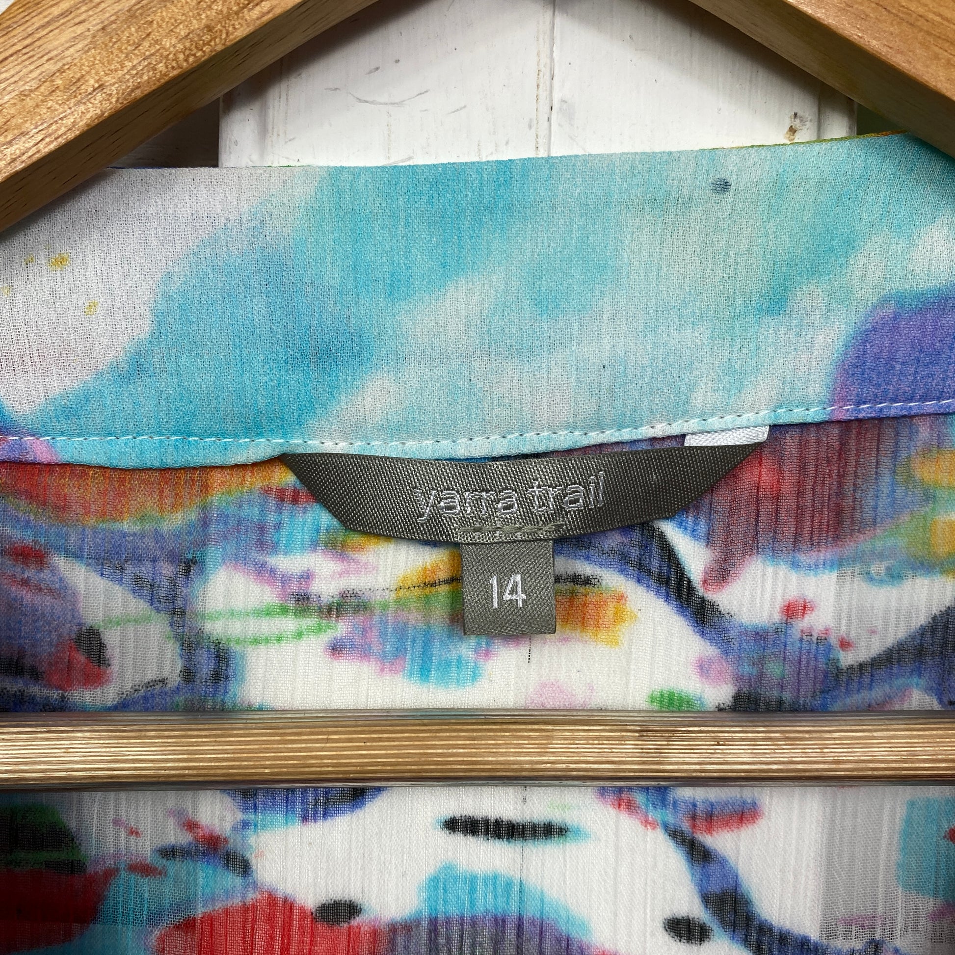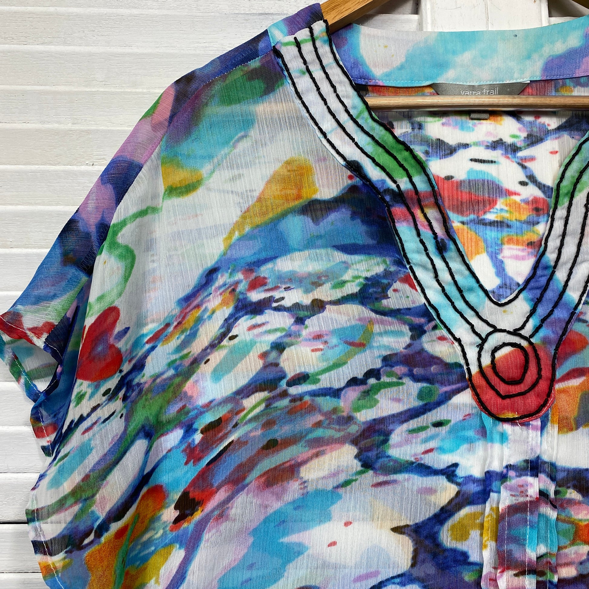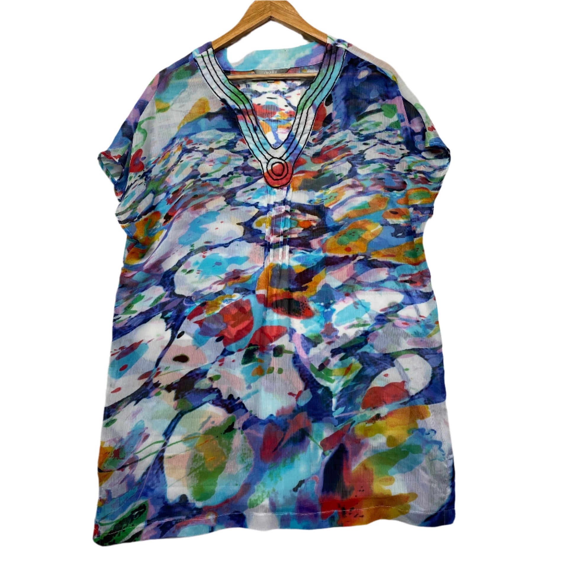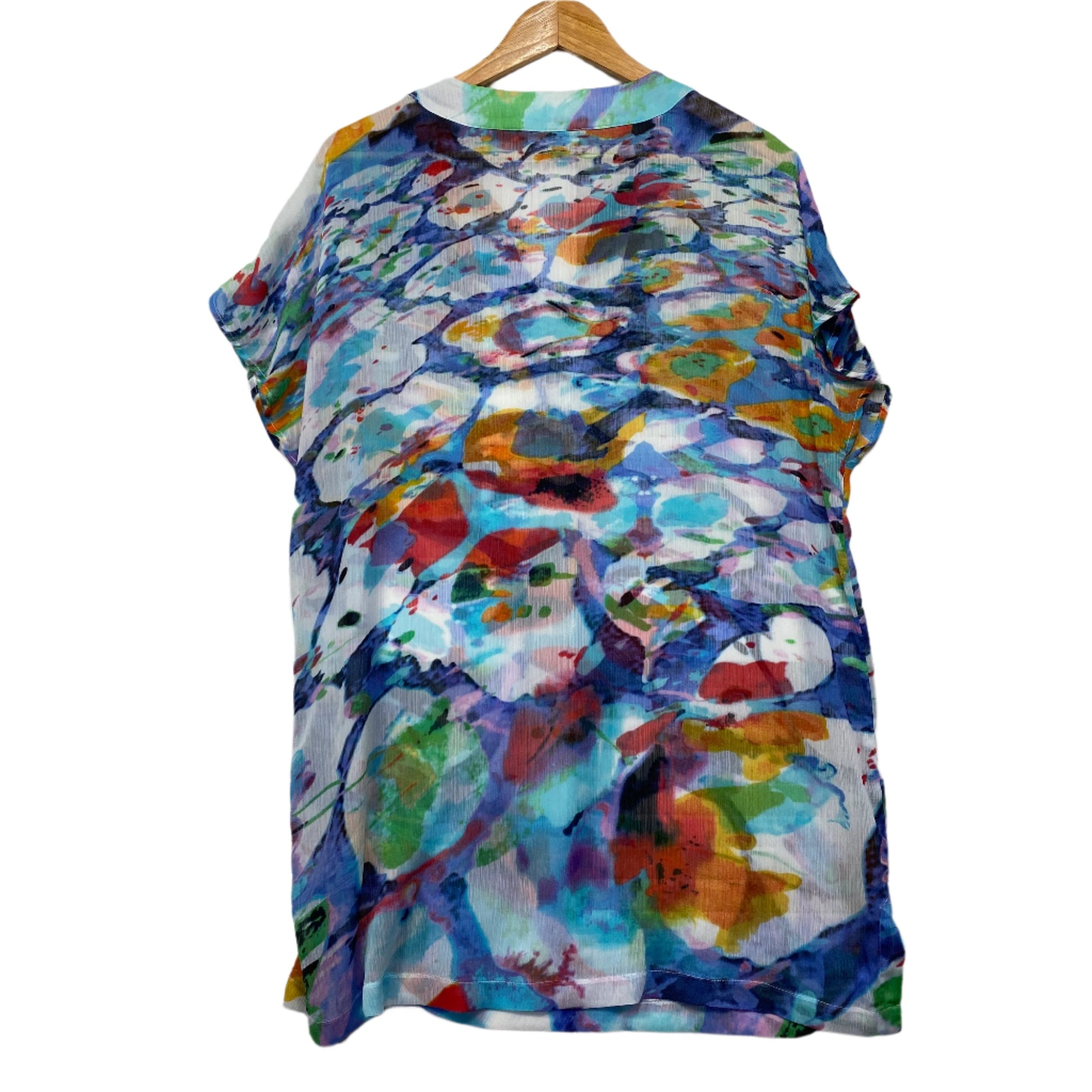 Yarra Trail Top Size 14 Short Sleeve Longline Multicoloured Sheer