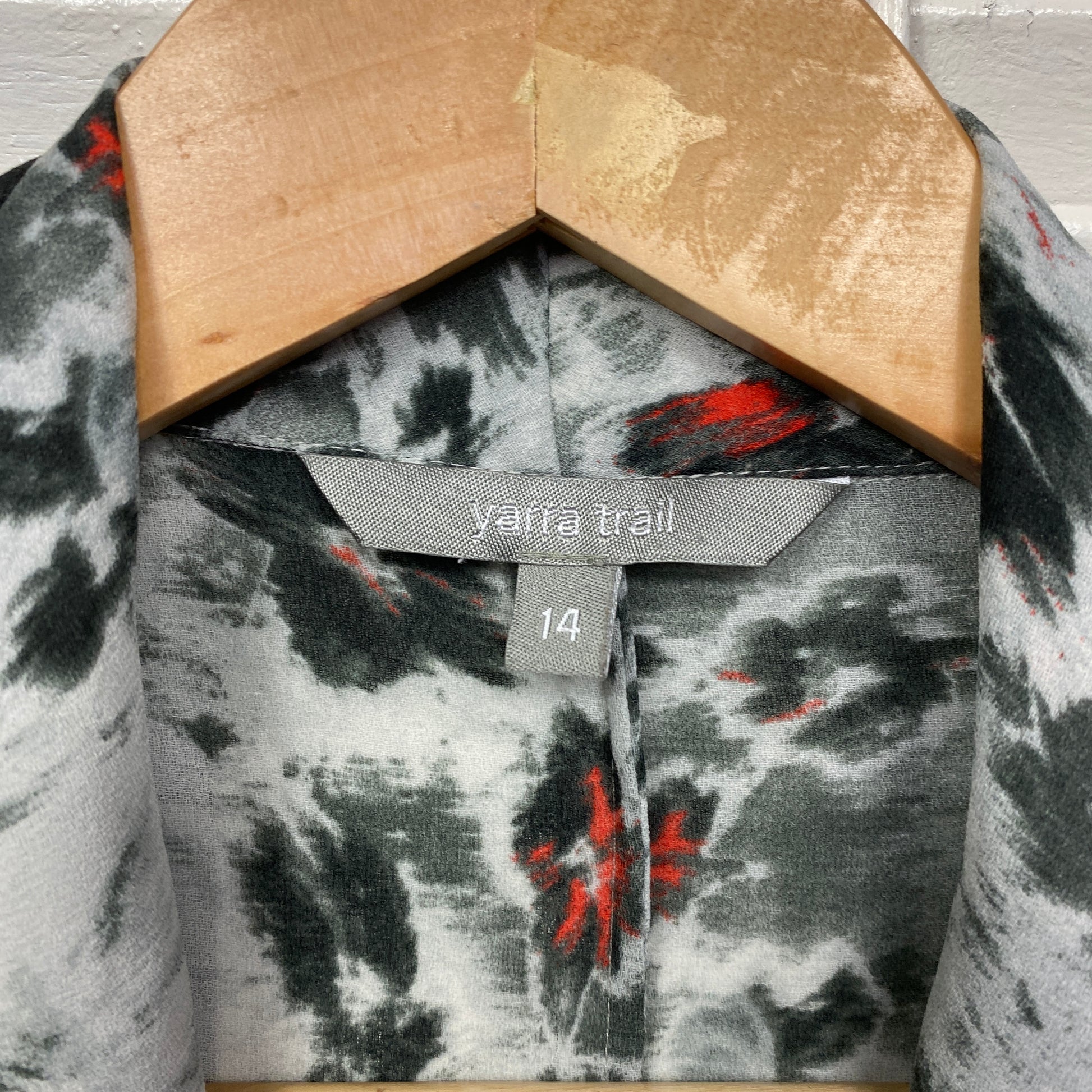 Yarra Trail Top Size 14 Open Front Multicoloured Long Sleeve