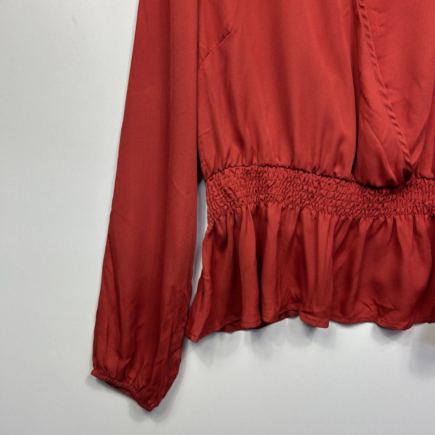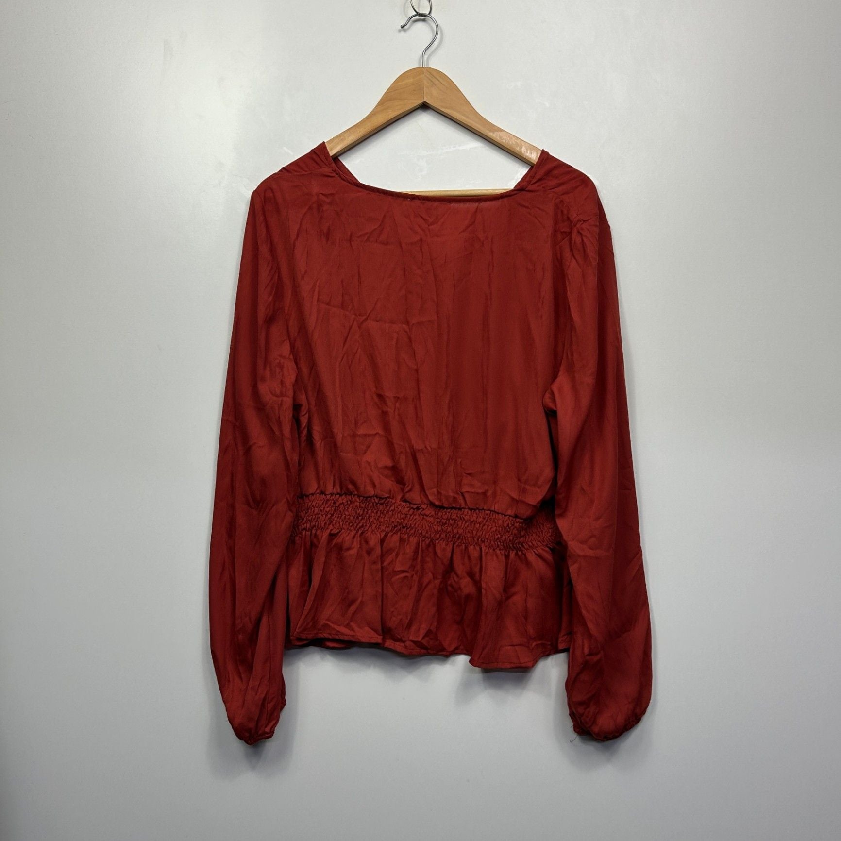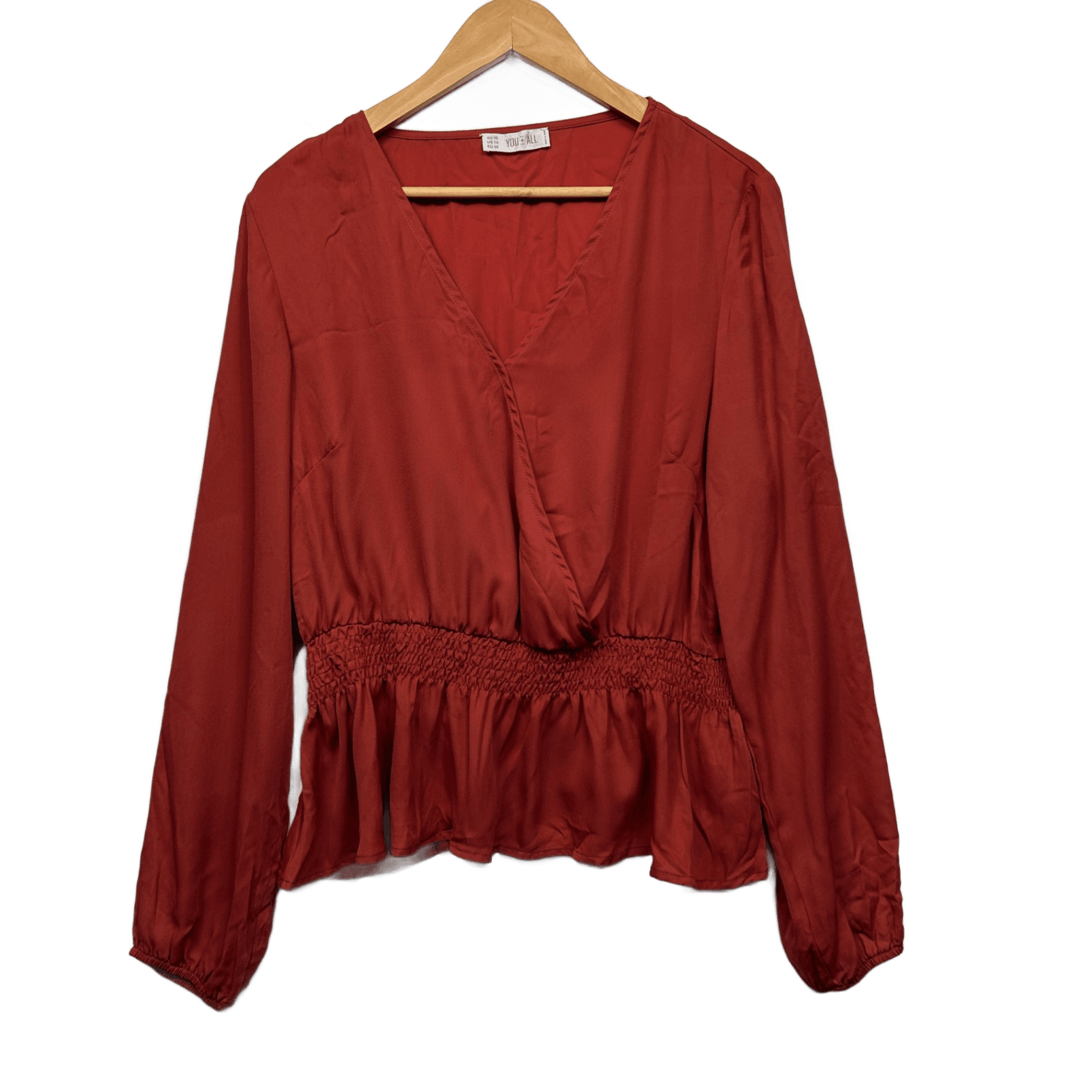 YOU + ALL Top Size AU 18 Rust Red Solid Long Sleeve Polyester Peplum